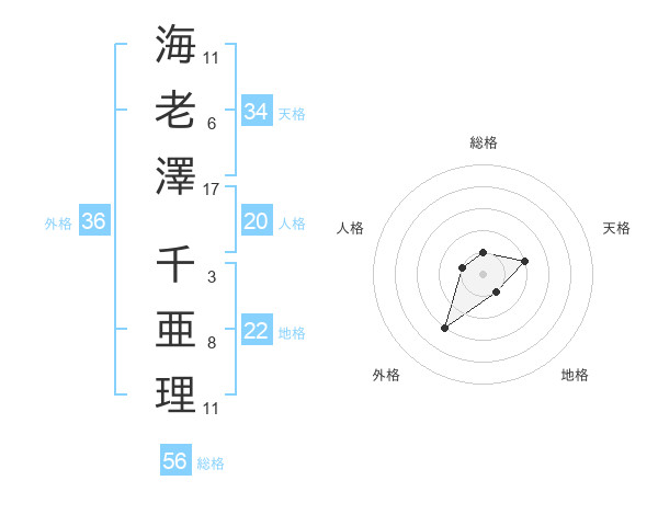 海老澤 千亜理さんを姓名の画数から五運を鑑定