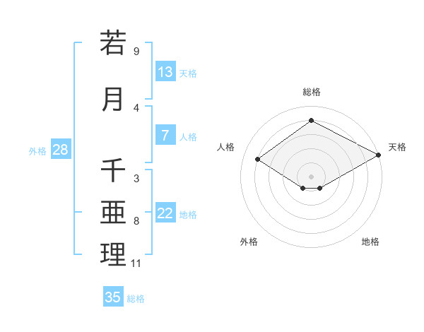若月 千亜理さんを姓名の画数から五運を鑑定