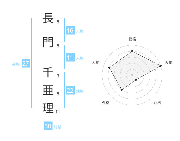 長門 千亜理さんの天格は16画の5点!