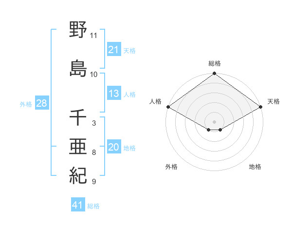 野島 千亜紀さんの総格は41画の5点!
