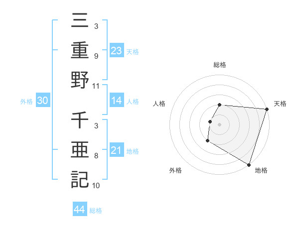 三重野 千亜記さんを姓名の画数から五運を鑑定