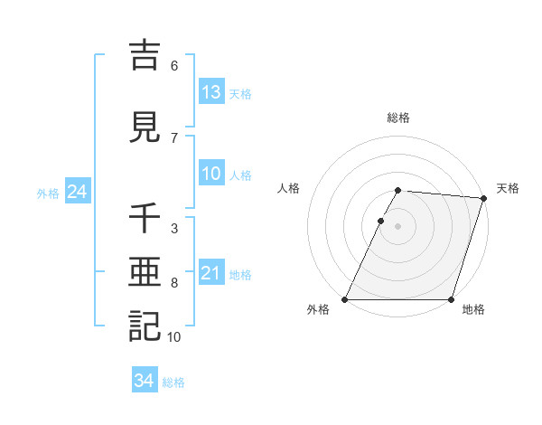吉見 千亜記さんを姓名の画数から五運を鑑定