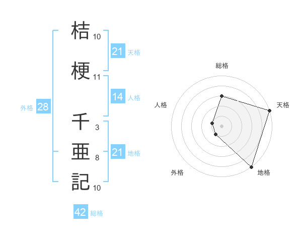 桔梗 千亜記さんを姓名の画数から五運を鑑定