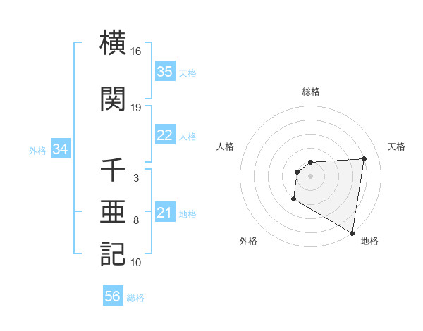 横関 千亜記さんの外格は34画の2点!