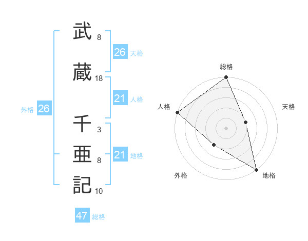 武蔵 千亜記さんを姓名の画数から五運を鑑定