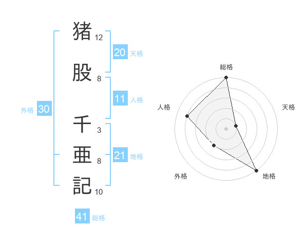 猪股 千亜記さんを姓名の画数から五運を鑑定