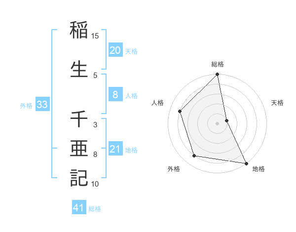 稲生 千亜記さんを姓名の画数から五運を鑑定