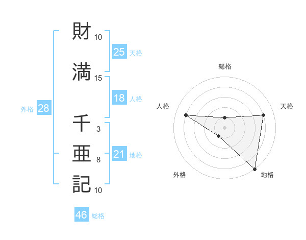財満 千亜記さんの天格は25画の4点!