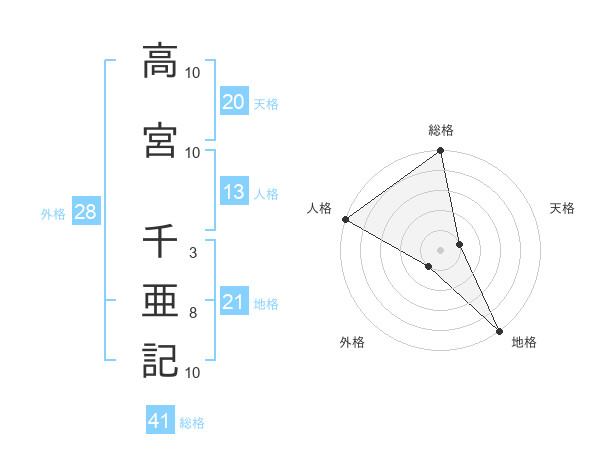 高宮 千亜記さんを姓名の画数から五運を鑑定