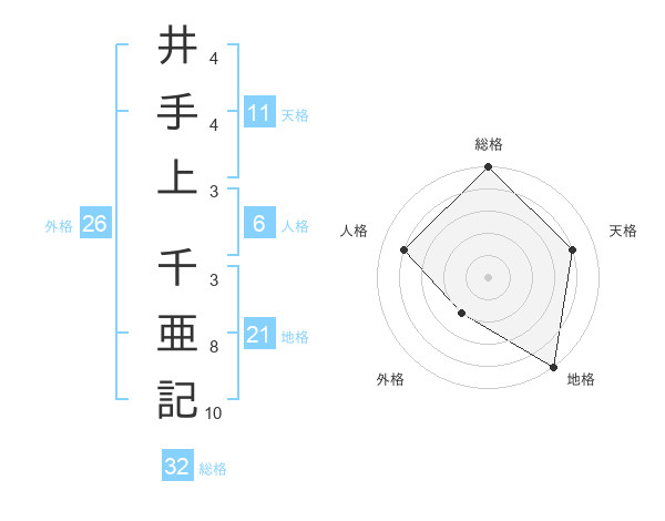 井手上 千亜記さんを姓名の画数から五運を鑑定