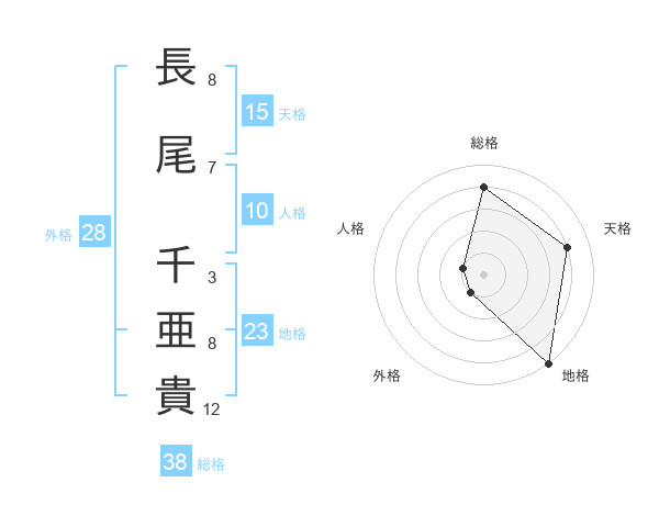 長尾 千亜貴さんの総格は38画の4点