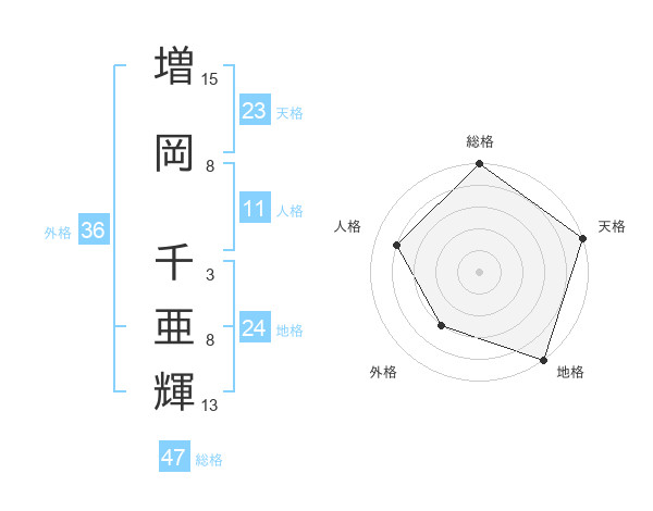増岡 千亜輝さんの総格は47画の5点!