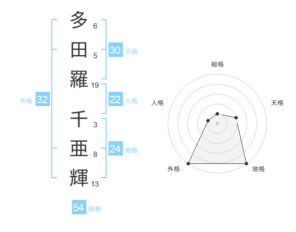 多田羅 千亜輝さんを姓名の画数から五運を鑑定