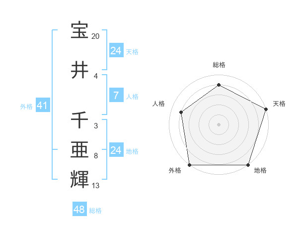 宝井 千亜輝さんの天格は24画の5点!