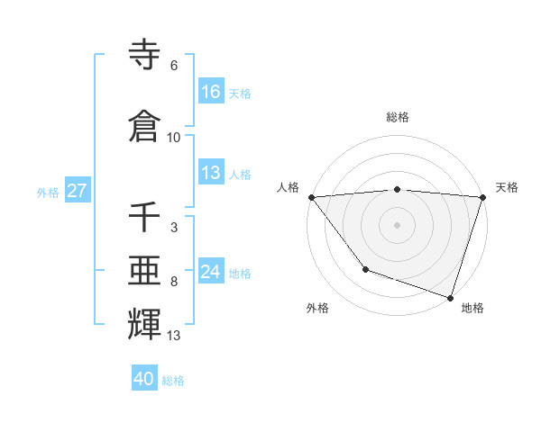 寺倉 千亜輝さんの外格は27画の3点!