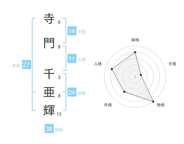 寺門 千亜輝さんの総格は38画の4点!