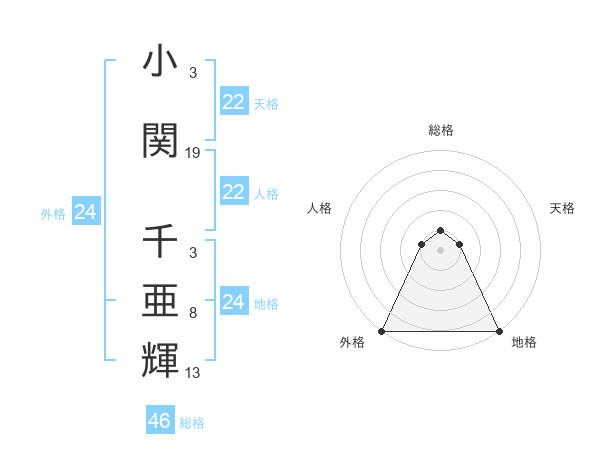 小関 千亜輝さんを姓名の画数から五運を鑑定