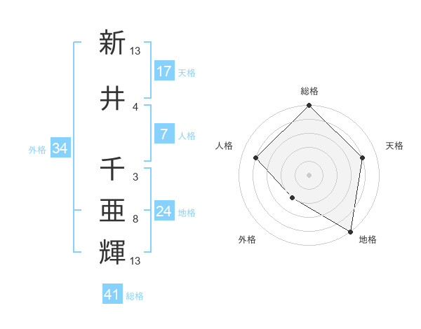 新井 千亜輝さんを姓名の画数から五運を鑑定