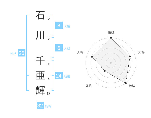 石川 千亜輝さんの総格は32画の5点