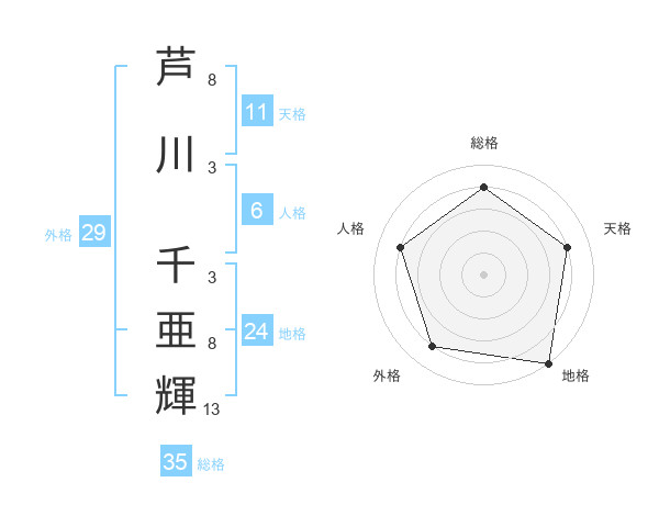 芦川 千亜輝さんの総格は35画の4点!