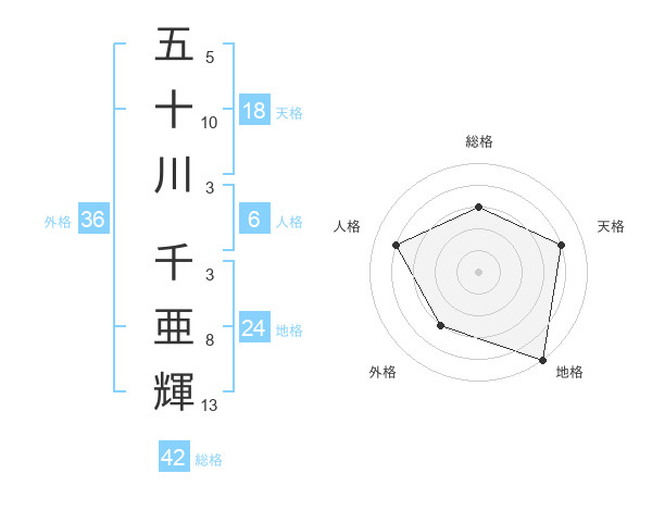 五十川 千亜輝さんの総格は42画の3点!