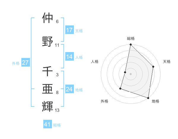仲野 千亜輝さんの総格は41画の5点!