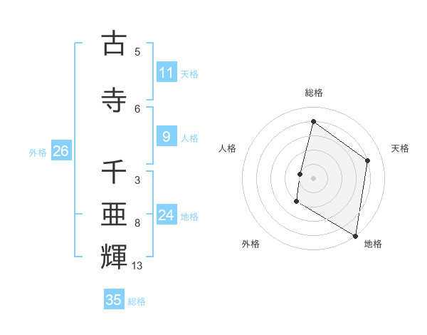 古寺 千亜輝さんを姓名の画数から五運を鑑定