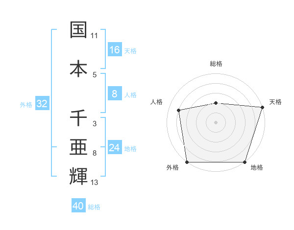 国本 千亜輝さんを姓名の画数から五運を鑑定