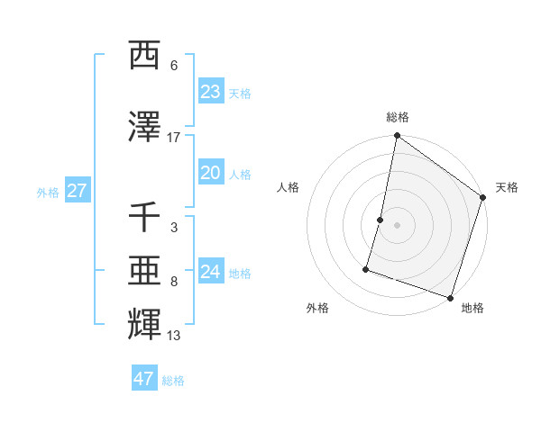 西澤 千亜輝さんを姓名の画数から五運を鑑定