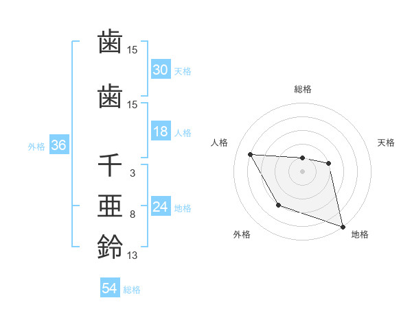 歯歯 千亜鈴さんの外格は36画の3点!