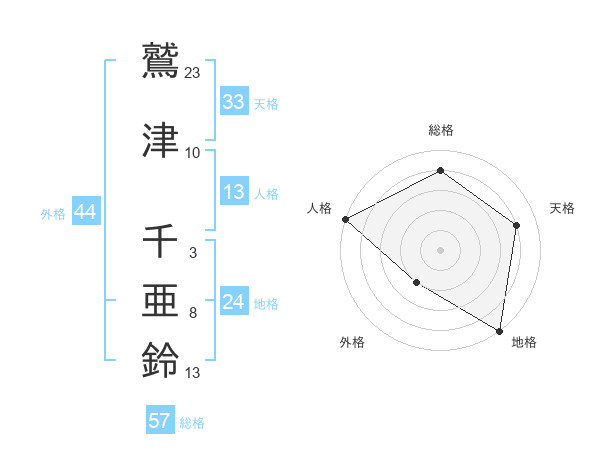 鷲津 千亜鈴さんを姓名の画数から五運を鑑定