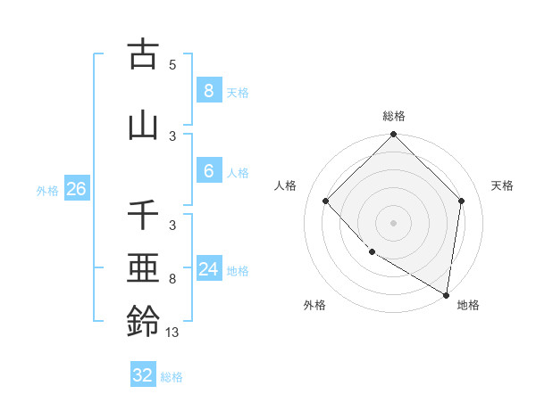 古山 千亜鈴さんを姓名の画数から五運を鑑定