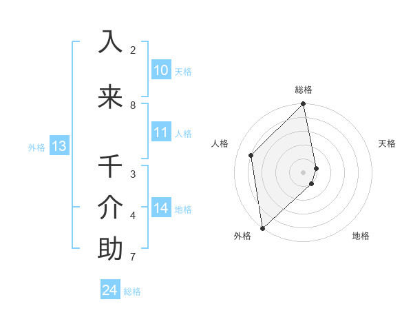 入来 千介助さんの外格は13画の5点!