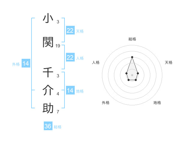 小関 千介助さんの総格は36画の3点!
