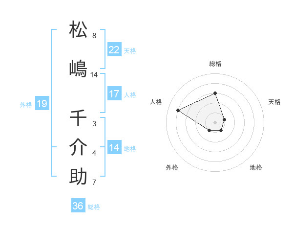 松嶋 千介助さんを姓名の画数から五運を鑑定