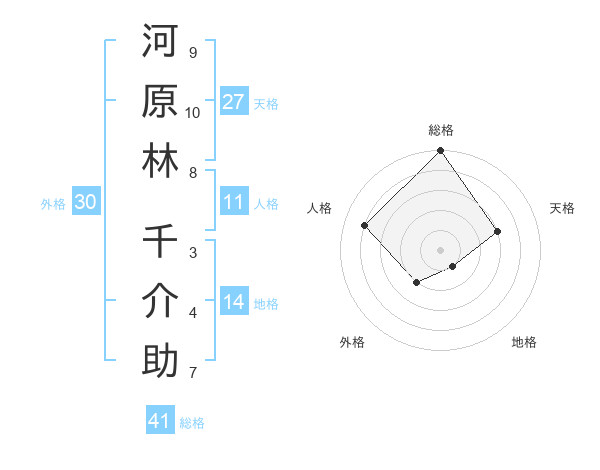 河原林 千介助さんを姓名の画数から五運を鑑定