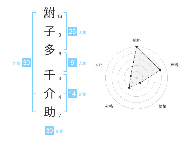 鮒子多 千介助さんの総格は39画の5点!
