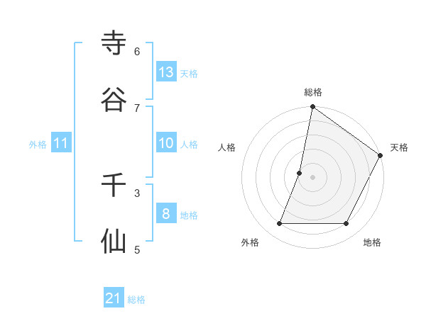 寺谷 千仙さんの総格は21画の5点!