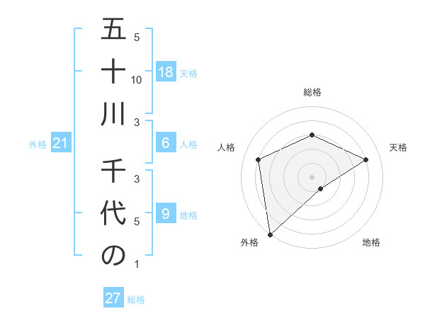 五十川 千代のさんの総格は27画の3点!