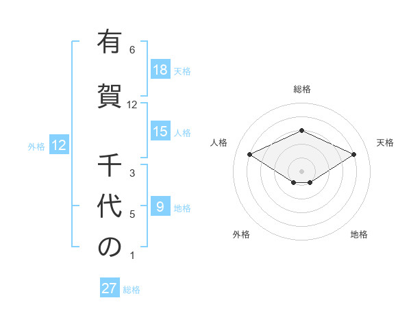 有賀 千代のさんを姓名の画数から五運を鑑定