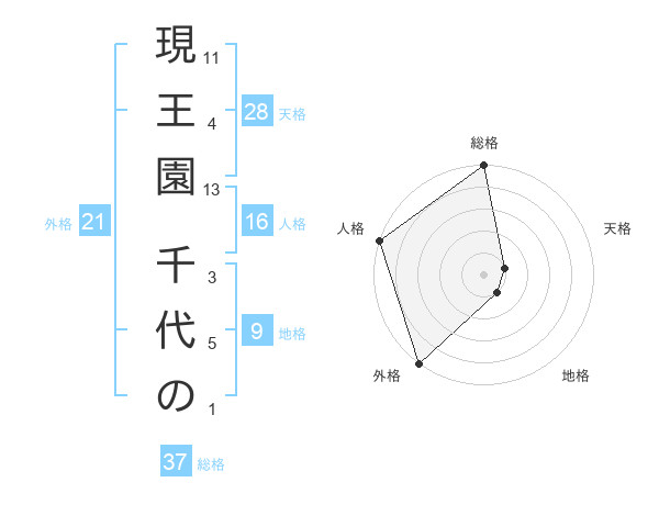 現王園 千代のさんを姓名の画数から五運を鑑定