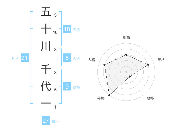 五十川 千代一さんの総格は27画の3点!