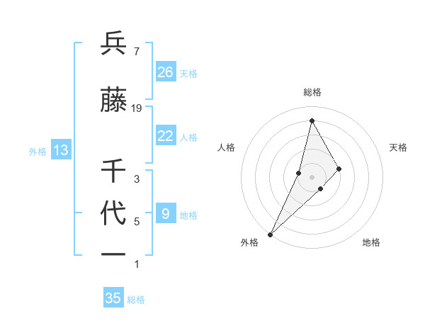 兵藤 千代一さんを姓名の画数から五運を鑑定