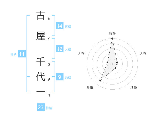 古屋 千代一さんを姓名の画数から五運を鑑定