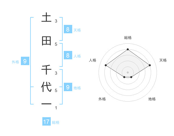 土田 千代一さんの総格は17画の4点