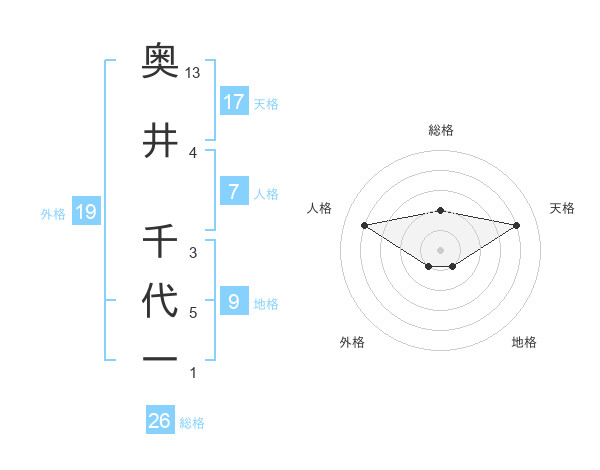 奥井 千代一さんの総格は26画の2点!