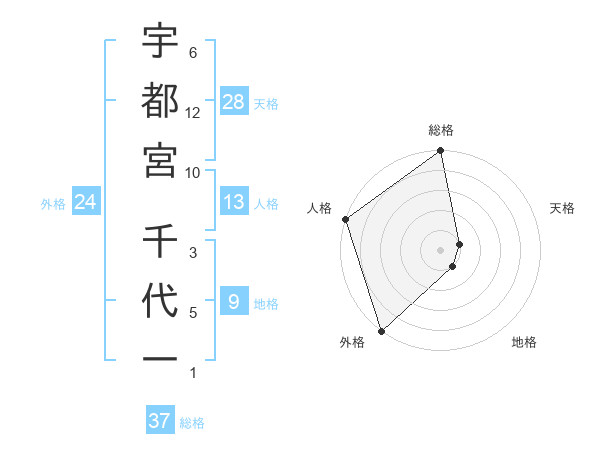 宇都宮 千代一さんを姓名の画数から五運を鑑定
