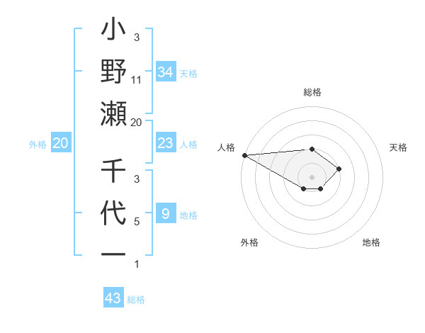 小野瀬 千代一さんを姓名の画数から五運を鑑定