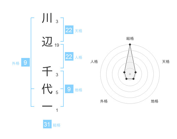 川辺 千代一さんを姓名の画数から五運を鑑定