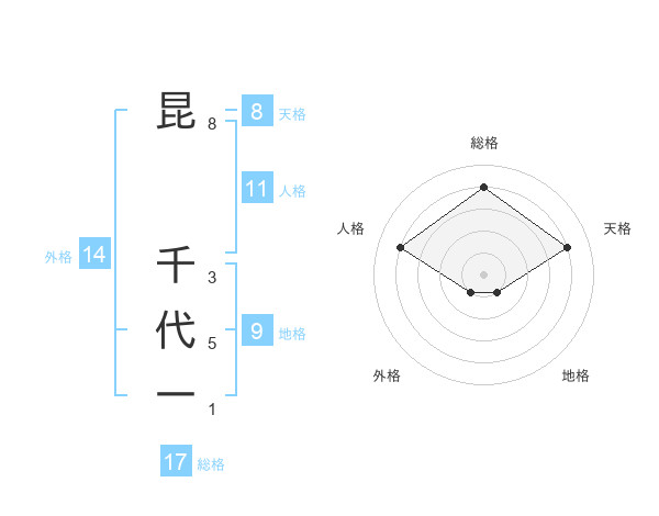 昆 千代一さんの総格は17画の4点